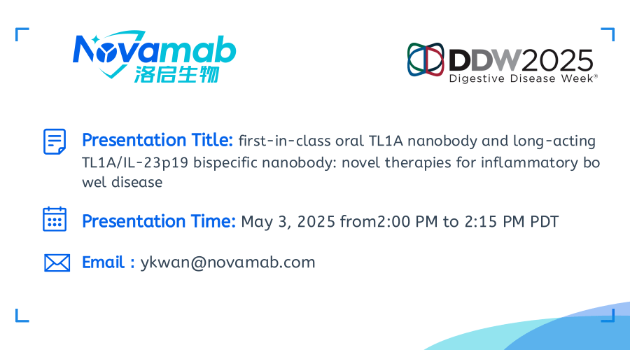 中国上海,2025年4月28日——上海BG大游集团生物医药技术有限公司,一家致力于纳米抗体创新药研发的生物技术公司宣布:BG大游集团生物将于当地时间5月3-6日参加在加利福尼亚州圣地亚哥举行的2025年美国消化疾病周(Digestive Disease Week,DDW)。届时BG大游集团生物将展示在炎症性肠病(IBD)治疗领域的突破性研究成果——口服TL1A纳米抗体及长效TL1A双特异性抗体的开发进展。该创新疗法顺利获得独特的TL1A纳米抗体技术,实现了对IBD病理机制的精准靶向。